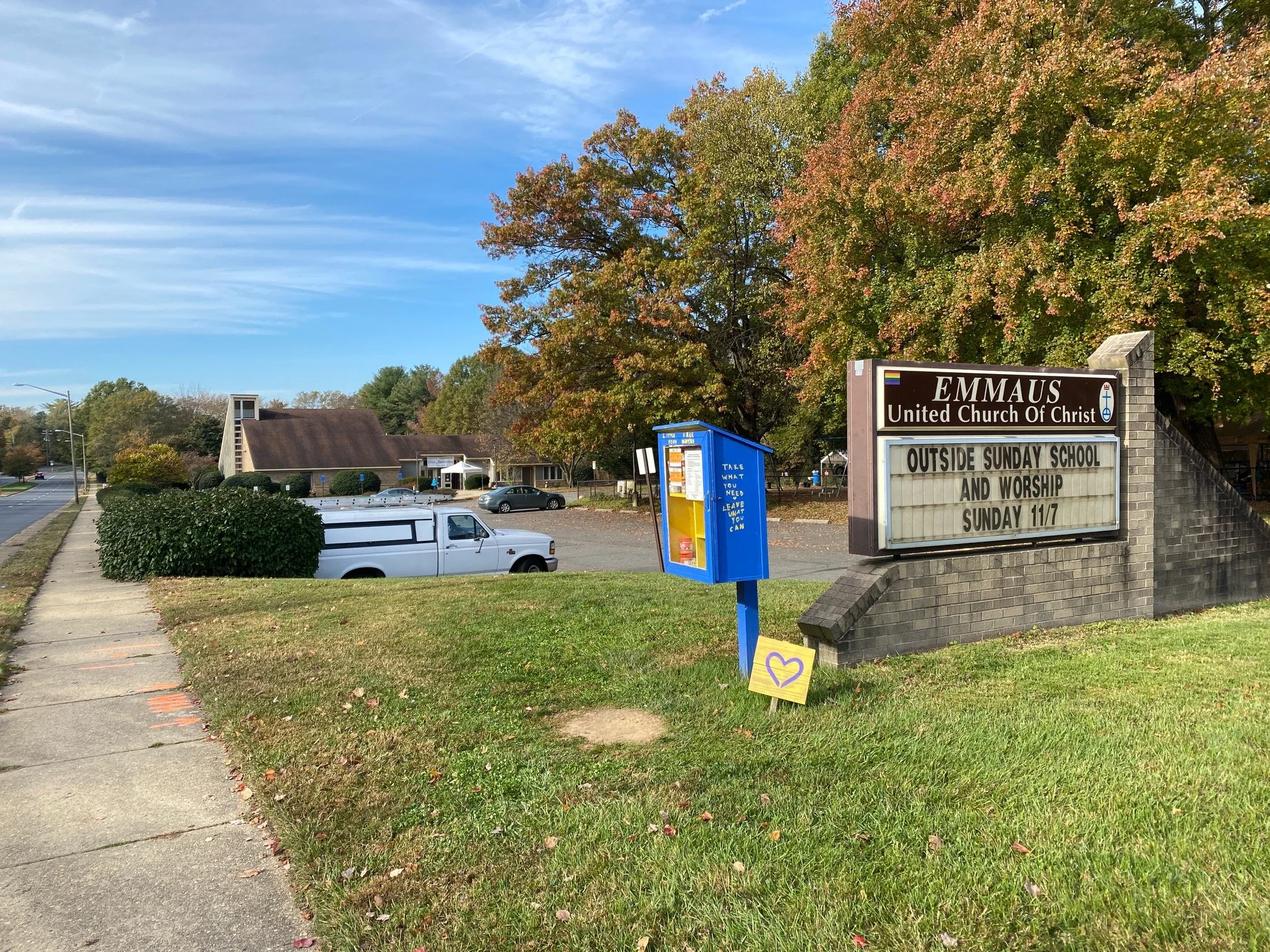 Want to donate? You can! The Pantries are in front of Emmaus United Church of Christ, at 900 Maple Ave, East, Vienna, VA, 22180.